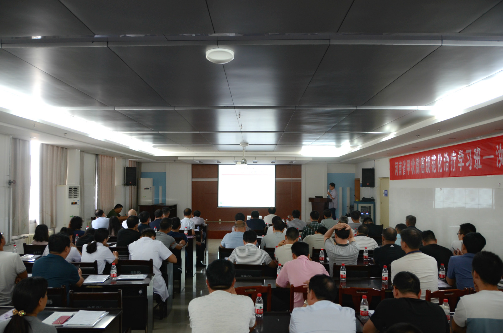 为规范我省甲状腺癌的诊疗,8月31日,由河南省肿瘤医院主办、汝阳县人民医院承办的“河南省甲状腺癌规范化治疗学习班”在汝阳县人民医院2号楼12层会议室举行。河南省抗癌协会甲状腺肿瘤专业委员会主任委员、河南省肿瘤医院甲状腺头颈外科主任秦建武、河南省肿瘤医院甲状腺头颈外科副主任医师张松涛、黑虎等专家学者莅临大会。汝阳县人民医院副院长陈红杰主持会议。